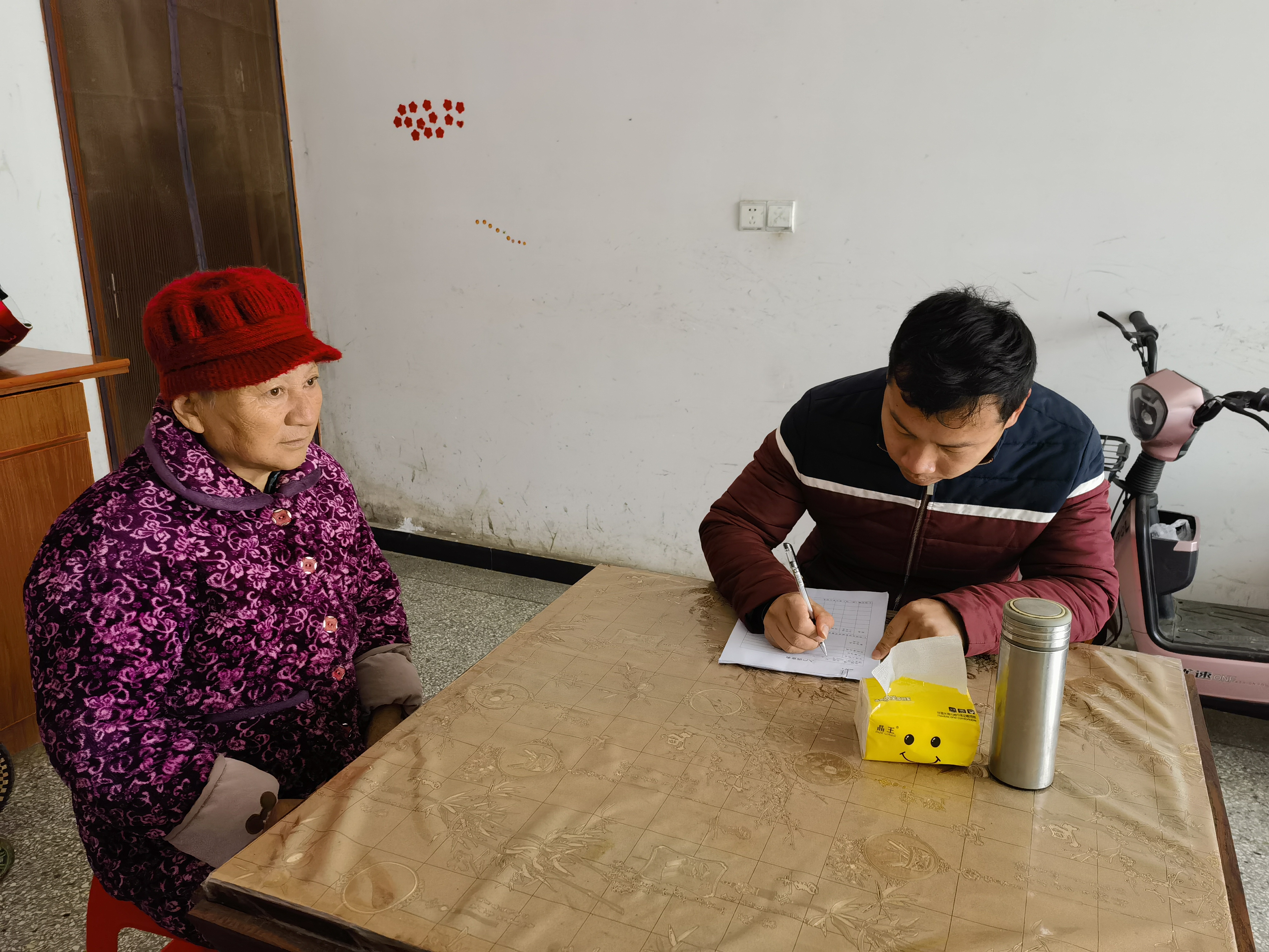 12月3日,竹園村黨支部組織各網格員到竹園村居家老人家中開展走訪慰問工作。