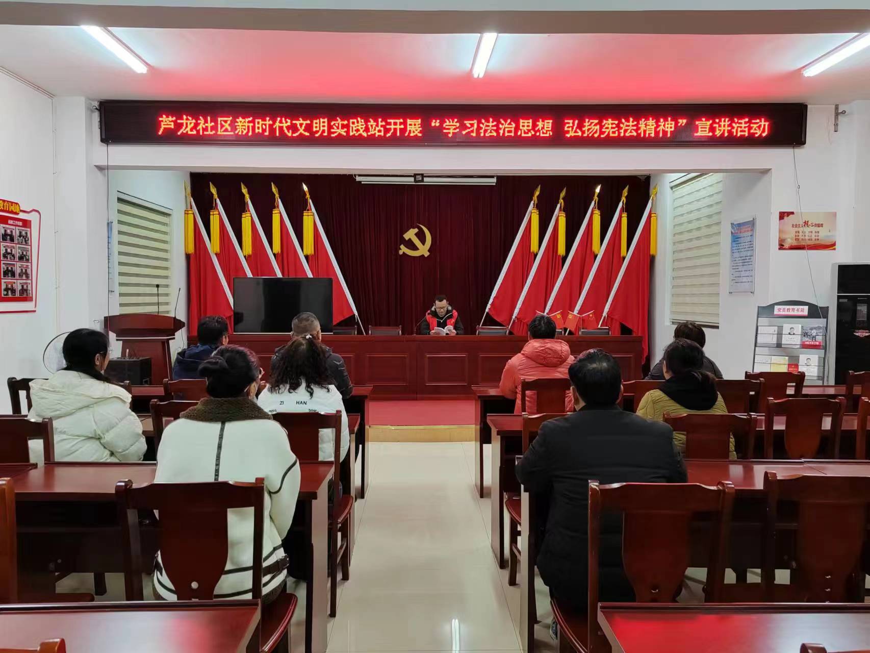 蘆龍社區新時代文明實踐站12月4日組織開展“學習法治思想,弘揚憲法精神”宣講活動。憲法是國家的根本大法,是規定國家各項基本制度和根本任務,規定國家機關的組織與活動的基本原則,是保障公民基本權利的國家根本大法。它在國家的整個法律體系中居于主導地位,具有最高的法律權威和最大的法律效力,既是國家治國安邦的總章程,也是公民立身行事的總依據。