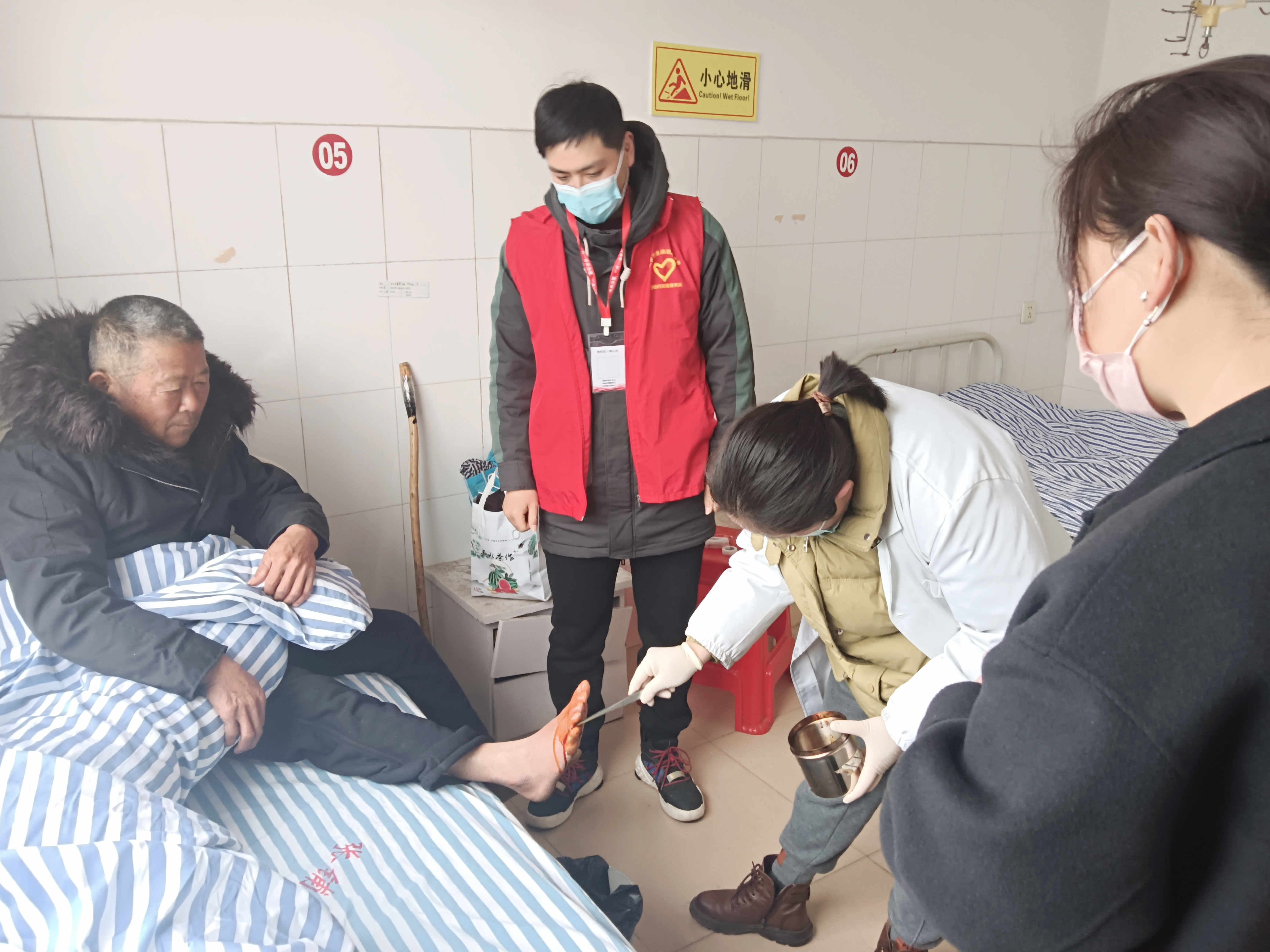 2月6日一早,張鋪鎮團結村網格員走訪時發現監測戶獨自在家行動不便,經過了解,由于糖尿病并發癥和凍瘡引起的腳部潰爛。春節期間由老人子女在家照顧,節后返崗工作后,因獨自居住無人照料,癥狀日漸嚴重。網格員第一時間將其送往張鋪衛生院進行治療,并辦理了掛號、住院、請護工等事項。