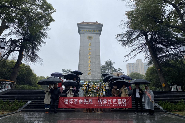4月4日上午8時,聯(lián)合黨委單位成員及社區(qū)工作人員準時來到烈士陵園門口匯合,由社區(qū)工作人員將一朵朵祭祀用的白菊花和掃墓用的毛巾等工具分發(fā)給大家,陵園工作者為大家簡單地講了一些入園后的注意事項。隨后,大家正式入園開展祭掃活動,天空蒙蒙細雨,陵園松柏蒼翠,烈士紀念碑前,大家手捧菊花,心情格外沉重,肅立默哀向烈士三鞠躬后敬獻花籃,追思革命烈士的高貴品質,致敬英雄。大家在陵園內瞻仰學習,認真聆聽烈士事跡,深刻體會到革命先烈的愛國情懷和犧牲精神。悼念儀式結束后,志愿者開展環(huán)境清掃和參觀活動,大家輕輕地擦拭墓碑上的每一處灰塵,清除園區(qū)內的雜草,使陵園面貌變得更加肅穆,衛(wèi)生也更加干凈整潔。