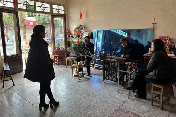 2023年2月26號,在銅北村虞彩香的家中,村民們正在忙著揚劇的排練。虞彩香是銅北村的名人,她幾十年如一日地練習揚劇,全因自己對于藝術的熱愛。她的這份熱愛感染了很多和她一樣有才華的村民,志同道合的他們聚在了一起,成立了揚劇團。