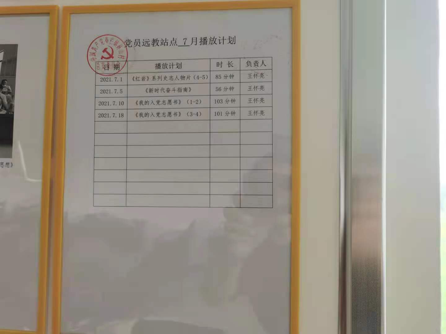 2021年7月1日,林山村制定7月份黨員遠教播放計劃,并進行公示。