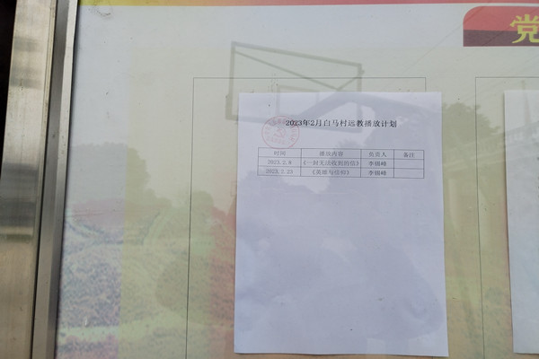 2023年2月2日,白馬村制定2月份黨員遠程教育播放計劃并進行公示。