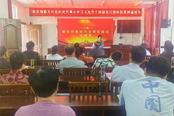 為進一步嚴明紀律規(guī)矩、強化警示教育,嚴肅整治黨員酒駕醉駕行為。5月20日,新街鎮(zhèn)勤東村組織黨員學習警示教育案例,對本鎮(zhèn)近期查處的1起黨員酒駕典型案例進行通報,讓全村黨員群眾再次深刻認識到酒駕醉駕的危害性,切實起到警示震懾作用。