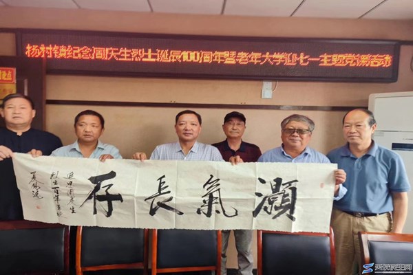 6月30日上午楊村鎮(zhèn)黨委為慶祝中國共產(chǎn)黨成立102周年到來之際,隆重舉行紀念周慶生烈士誕辰100周年活動,楊村鎮(zhèn)鎮(zhèn)長譚志華,鎮(zhèn)組織委員董正超,副鎮(zhèn)長張福良,市老科協(xié)副主任姜金富,楊村鎮(zhèn)老教委副主任,鎮(zhèn)關工委主任董金虎以及各村(社區(qū))老年學校校長、老年學校成員等40多人參加了活動,活動由鎮(zhèn)黨委組織委員董正超主持。鎮(zhèn)黨委副書記劉金山首先致辭,贊揚烈士的豐功偉績,號召全鎮(zhèn)黨員干部要繼承烈士遺志,不忘初心、牢記使命,做好各項工作,告慰烈士在天之靈。