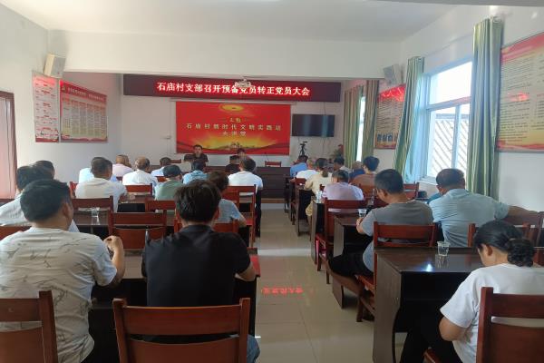 為進一步強化黨支部建設,按時完成預備黨員轉正工作,引導黨員堅定崇高理想信念,提高黨性修養。9月10日上午,石廟村黨支部在二樓黨員活動會議室召開預備黨員轉正大會。支部黨員參加了此次會議。