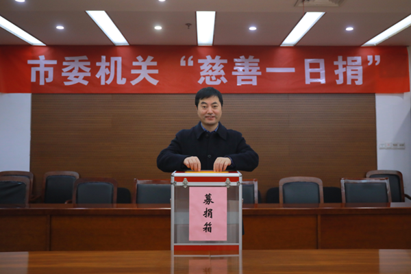 11月16日上午,市委機關組織全體干部職工開展“慈善一日捐”活動,市委書記賀家平、市委副書記闞緒瑞到場帶頭捐款,為天長的慈善事業獻上一份愛心,引導動員社會各界積極參與“慈善一日捐”活動。