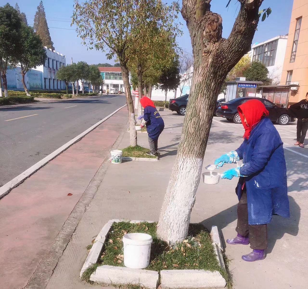 冬季樹木刷白,一方面可以有效防止樹木受到蟲卵和細菌的侵害,減少病蟲害發生;另一方面,冬季晝夜溫差大,樹皮熱脹冷縮后很容易開裂,刷白之后能反射大部分陽光,從而拉近晝夜溫差,減輕熱脹冷縮作用,樹干不易凍裂。