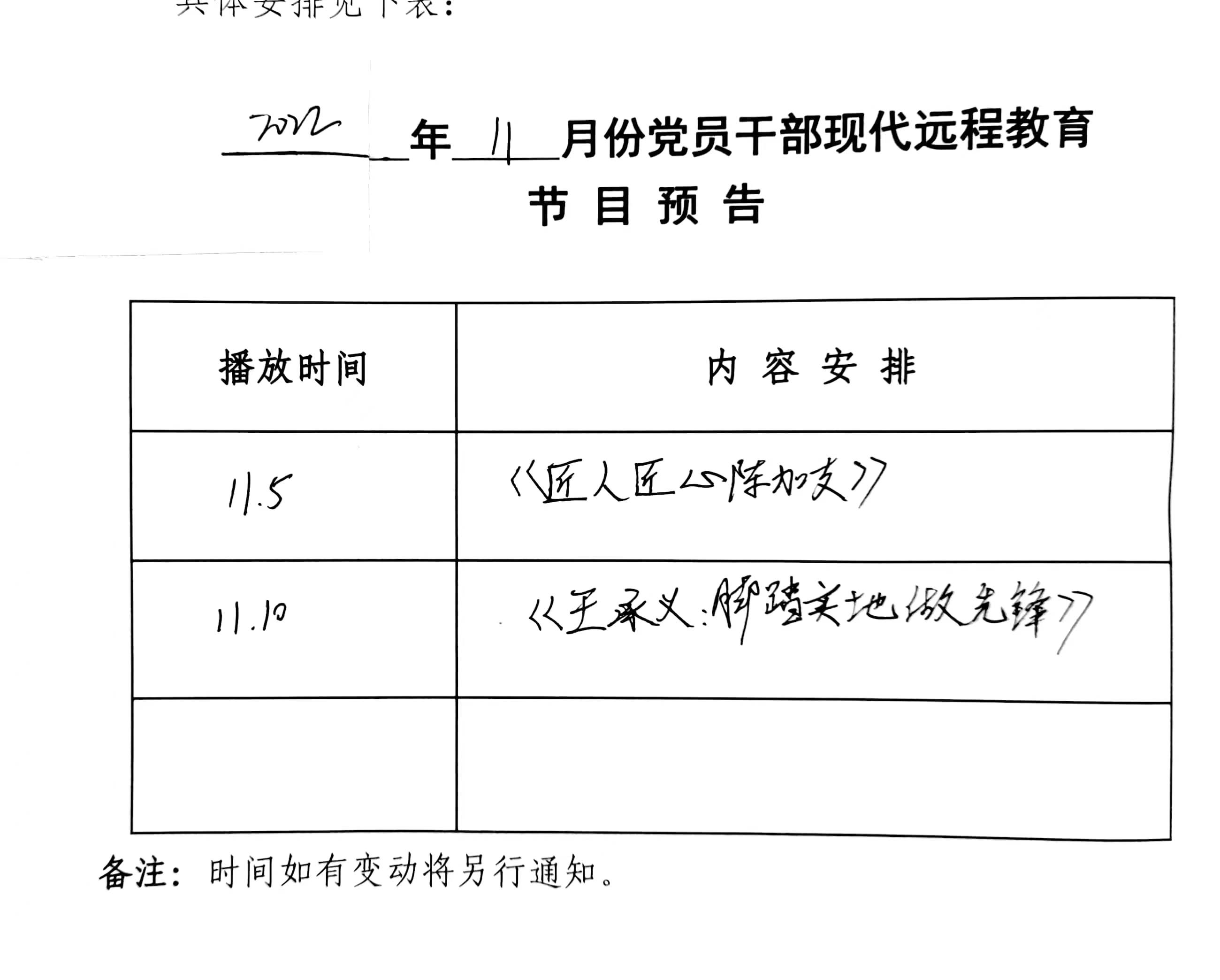 上一篇:掌鼓村2022年10月份遠(yuǎn)程教育播放計劃[ 10-24 ] 下一篇:掌鼓村2022年12月份遠(yuǎn)程教育播放計劃[ 12-24 ]