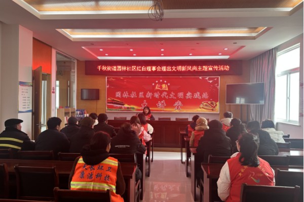 2月4日,千秋街道園林社區以黨建為引領,組織紅白理事會志愿者們在社區新時代文明實踐站周邊開展“紅白理事會理出文明新風尚”主題宣傳活動,進一步推動移風易俗、破除陳規陋習。