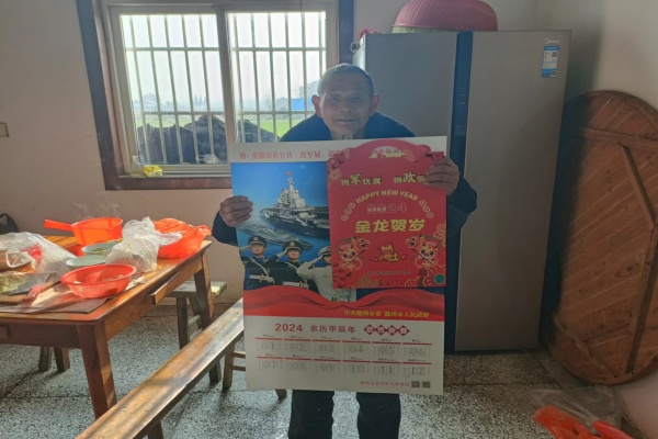 “看到這群孩子們來,我心里還是很開心的,現在黨的政策真的很不錯,時刻把我們放在心上,這新年之際為我們退伍老兵送上年畫,我打心底高興。”路連成樂呵呵地表示。