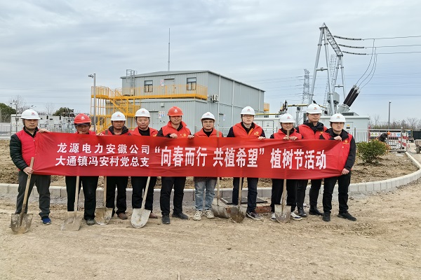 龍源增壓站新建在馮安村農村組,周邊土地荒廢,環境空蕩。為了改善馮安村的生態環境,2024年3月17日上午,馮安村黨總支與安徽龍源工程建設部黨支部攜手共同舉辦了一場意義非凡的植樹活動。馮安村黨總支成員、安徽龍源工程建設部、紀委辦公室、設備維保中心黨支部黨員、職工群眾參與此次活動。