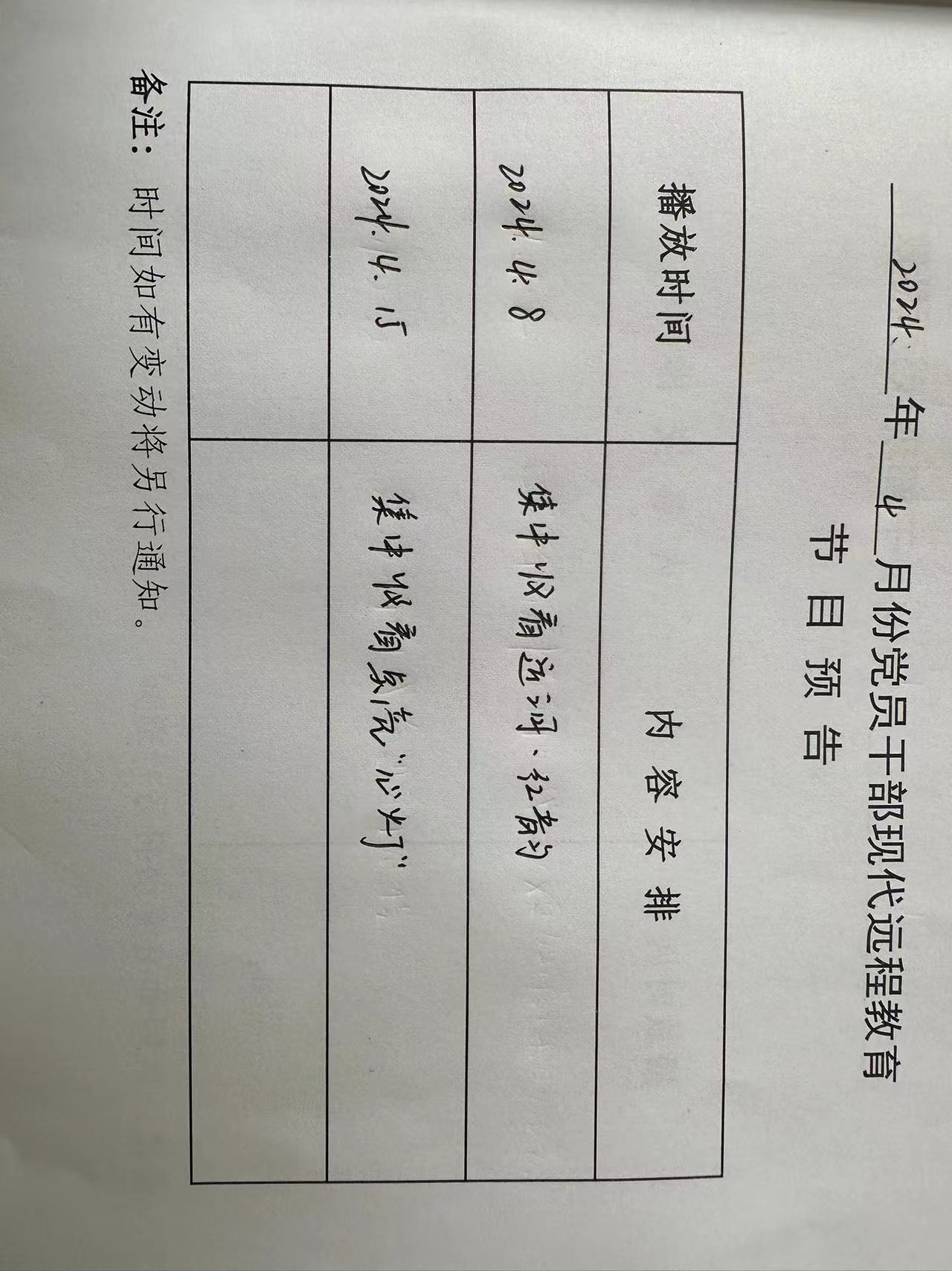 銅城鎮(zhèn)蘇橋村2024年4月遠(yuǎn)程教育播放計(jì)劃如上圖所示。
