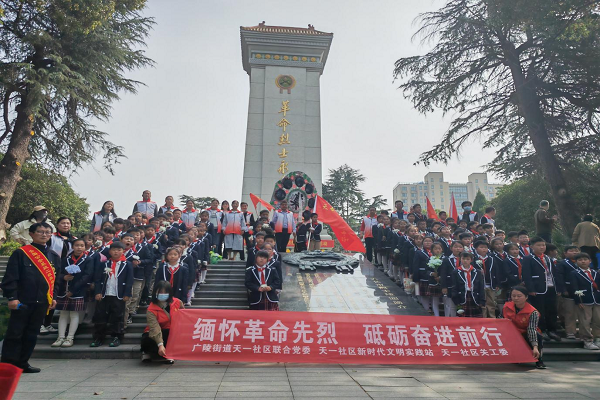 一年一清明,一歲一追思,在清明節即將來臨之際,為了緬懷革命先烈的豐功偉績,繼承和發揚革命優良傳統,寄托對革命先烈的無限哀思。廣陵街道天一社區聯合黨委、社區關工委聯合天長市第三小學,共同開展了以“緬懷革命先烈 砥礪奮進前行”為主題的清明文明祭掃活動。