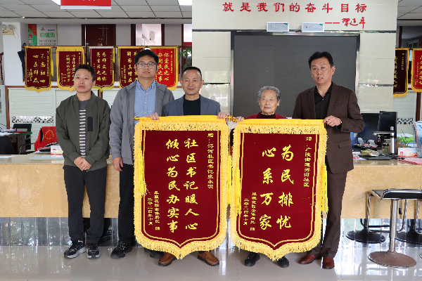 “我們反映的破損水泥路面修好了,鍛煉的場所也設置了長條椅子,居民的幸福指數直線上升,社區真正是為我們居民辦了實事啊!”10月24日上午,天長市廣陵街道潯河社區黨群服務中心出現暖心的一幕,社區翠微巷居民代表將印有“社區書記暖人心 傾心為民辦實事”“為民排憂 心系萬家”的兩面錦旗送到社區,對社區為網格居民辦實事、惠民生、解民憂表示衷心感謝。