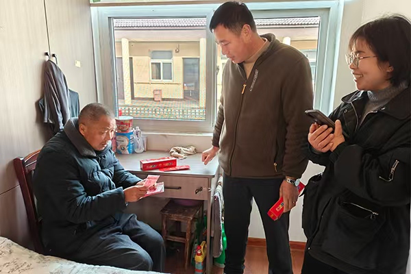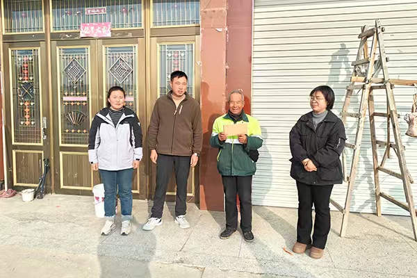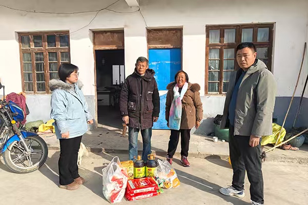 他們穿梭在村落的大街小巷,率先叩響困難黨員和五保人員的家門。每到一戶,都緊握鄉親們的手,噓寒問暖,詳細詢問身體狀況與生活需求,親手遞上米面糧油、御寒棉被等慰問品,句句關懷的話語,如同一束束暖陽,照亮了大家的心間。